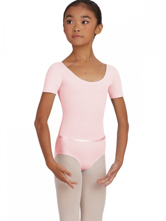 Body Capezio CAD400C a mezza manica in cotone. Usato dalla The Royal Academy of Dance. I body comprendono una cintura elastica in vita abbinata al colore del body