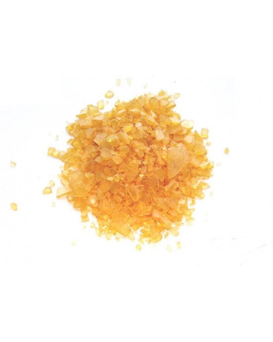La pece greca è una resina gialla solida, trasparente.