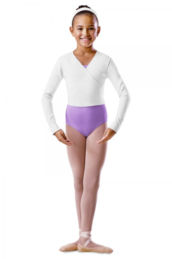 Scaldacuore a portafoglio con maniche lunghe realizzato in morbido misto cotone/spandex. L'ideale da indossare sopra un body per riscaldarsi fra una classe e l'altra.
